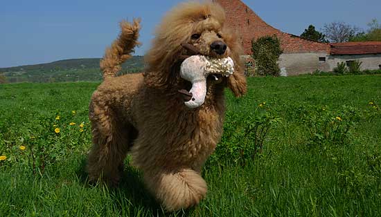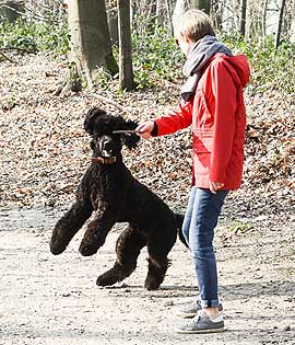 Aber eigentlich höre ich schon echt gut, komme jederzeit zurück, bleibe artig liegen (wenn´s denn sein muss) und laufe spitzenmäßig an der Leine. Also easy Leute, alles im grünen Bereich!" Flocke vom Pudelkönig