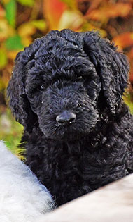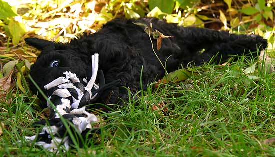 Angesichts der ausschweifenden Futterzeremonie stellt sich selbst der biologisch vorgebildete Züchter immer wieder ernsthaft die Frage, ob kleine Babypudel genetisch eher mit wilden Borstentieren denn mit anmutigen Wölfen verwandt sind... Wie im Schlaraffenland suhlen sich die Lockenfrischlinge glücklich in ihrer ersten warmen Milch(brei)zeit - ein wichtiger, wenn auch wenig stilvoller Schritt in Richtung Selbstständigkeit, und sooo lecker!