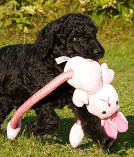 Schneewittchen auf ihrem Beutezug durch die Spielzeugkammer erlegt hat, größtes Interesse. Besonders Inka-Tinka (2140g) liebt das wilde Schwein und empfiehlt sich damit nachdrücklich ihrem zukünftige Frauchen. Das nämlich ist gerade dabei einen Jagdschein zu machen und hofft später auf pudelige Unterstützung im Revier. Auch die anderen fünf Löckchen sind längst in festen Händen. Allein vier von ihnen werden künftig in der Hauptstadt ihre Zelte aufschlagen.Um die kleinen "Landeier" großstadttauglich