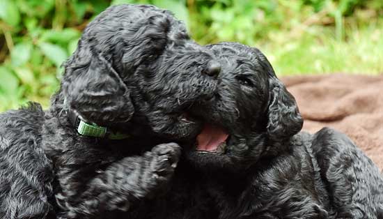 Doch gute Anlagen, Begabung und Talent allein reichen für die anspruchsvollen Jobs der jungen Pudelkönige nicht aus. Was also tun? Prägung, Prägung und ? Genau! Prägung. Frauke und Käthe sind inzwischen schon fast Vollprofis im Umgang mit unseren Babylocken: zärtlich und liebevoll, aber auch spontan, laut und vor allem ideenreich sorgen sie dafür, dass unerschütterliches Vertrauen in kleine Zweibeiner und freudige Erwartungshaltung tief verwurzelt werden.